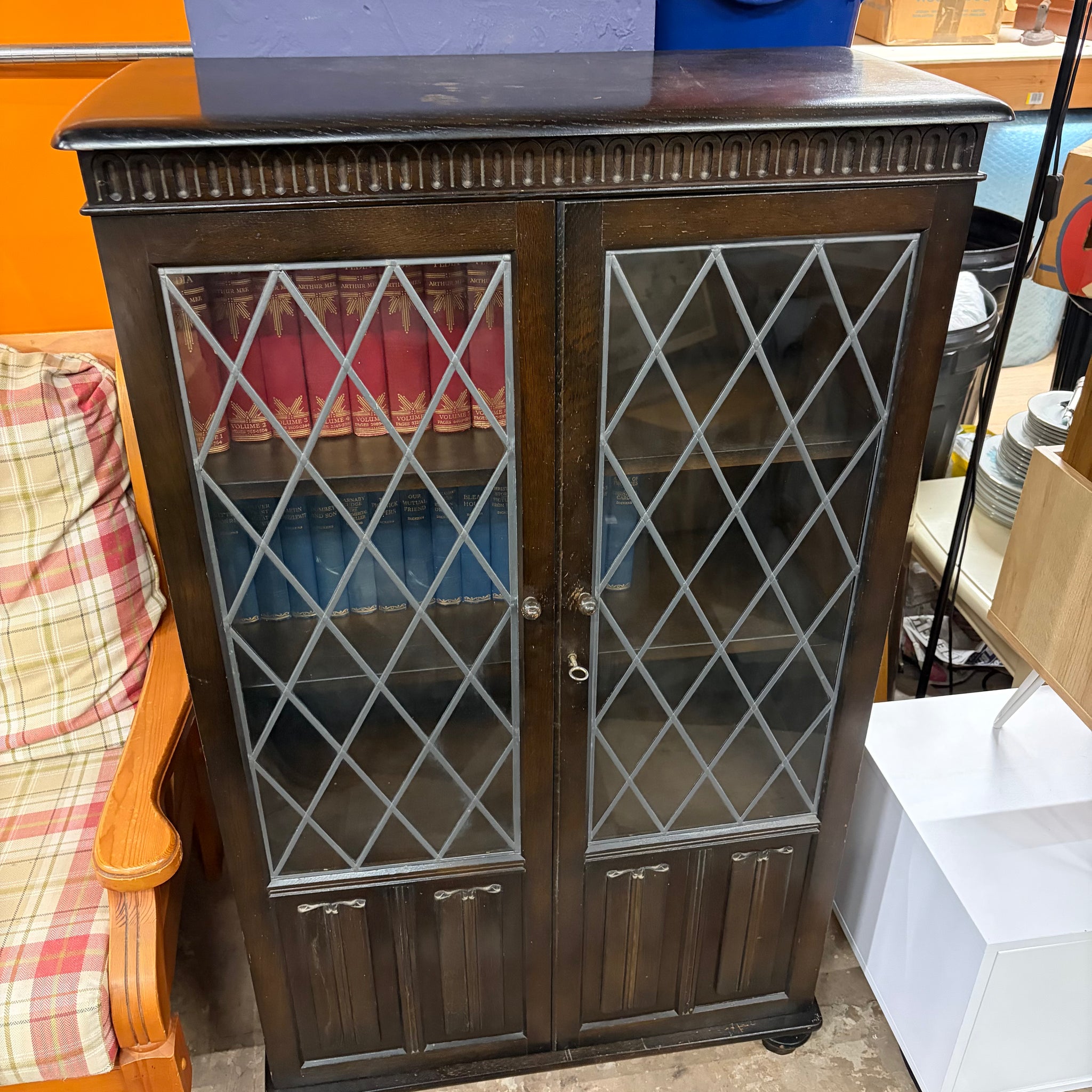 Oak Leaded Glass Bookcase