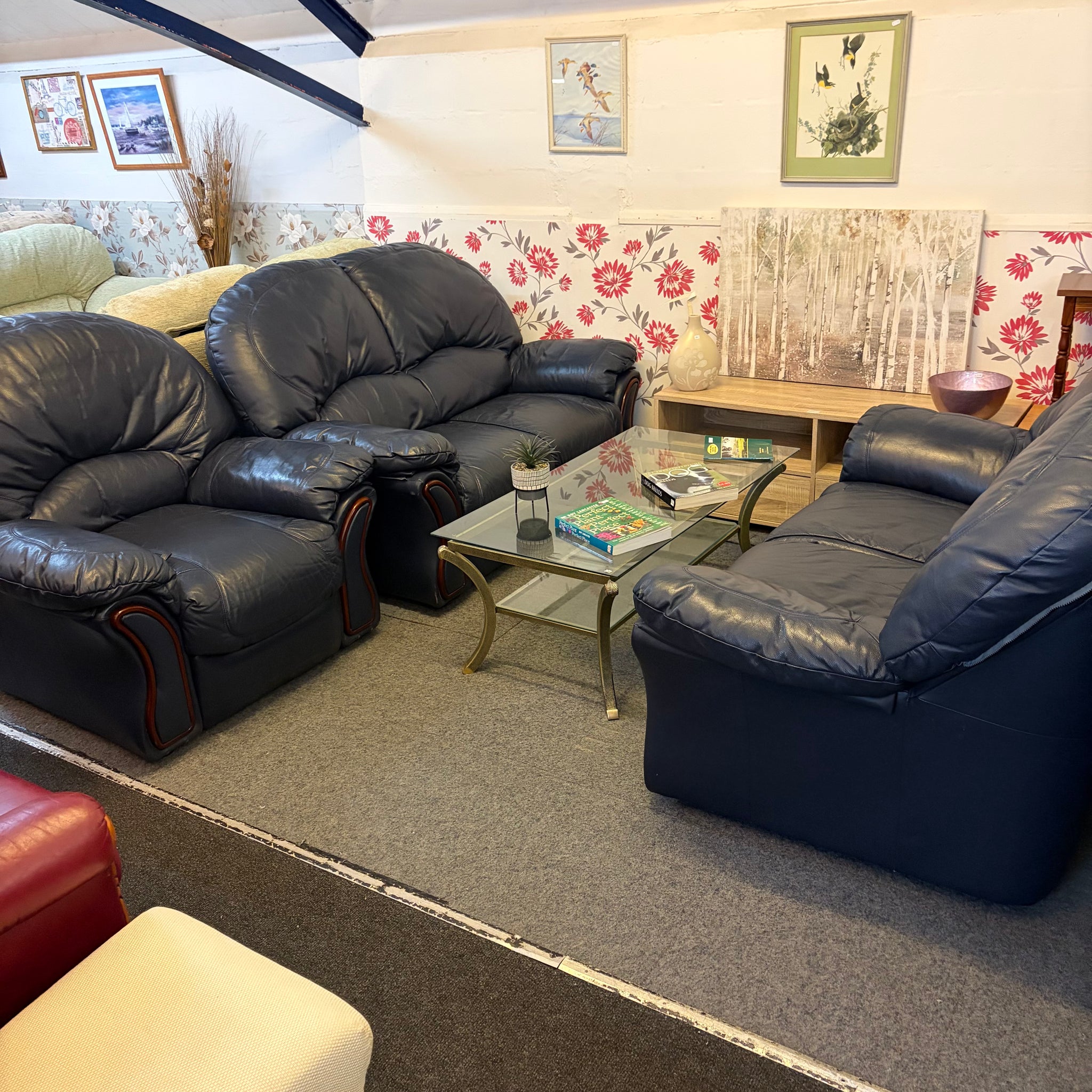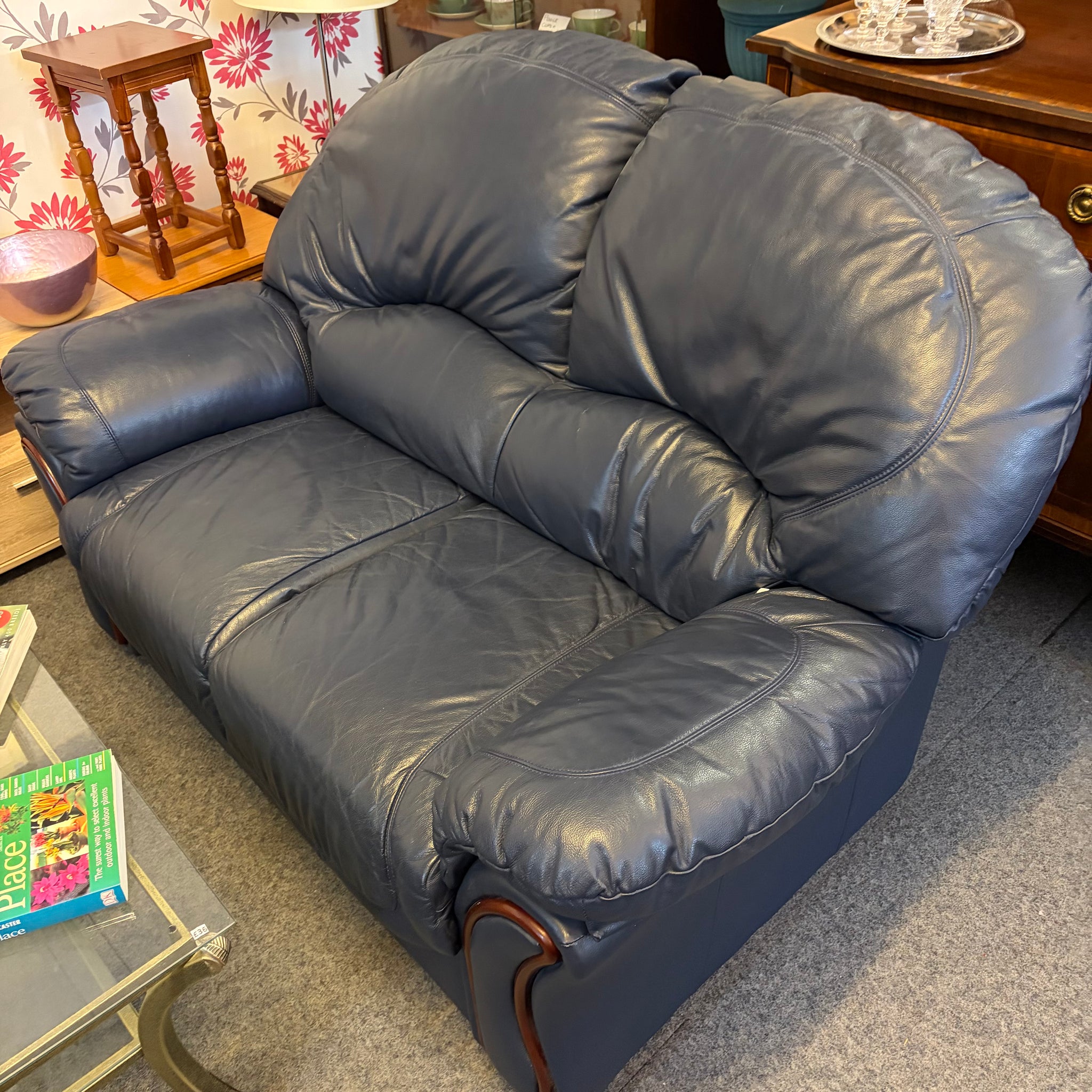 In Navy Blue Faux Leather with Wooden Trim